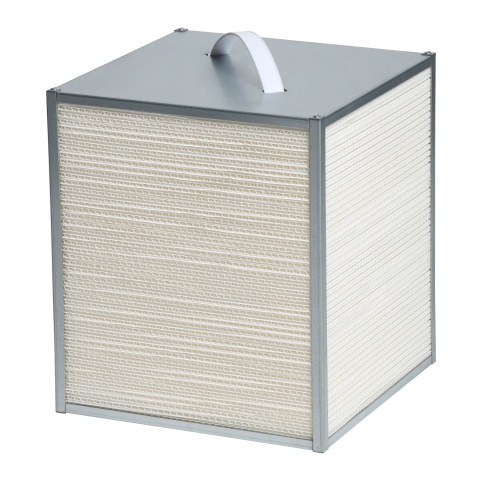 두 기체가 서로 교차하면서 섞이지 않고 열과 수분이 전달되는 전열막지가 사용된 전열교환기